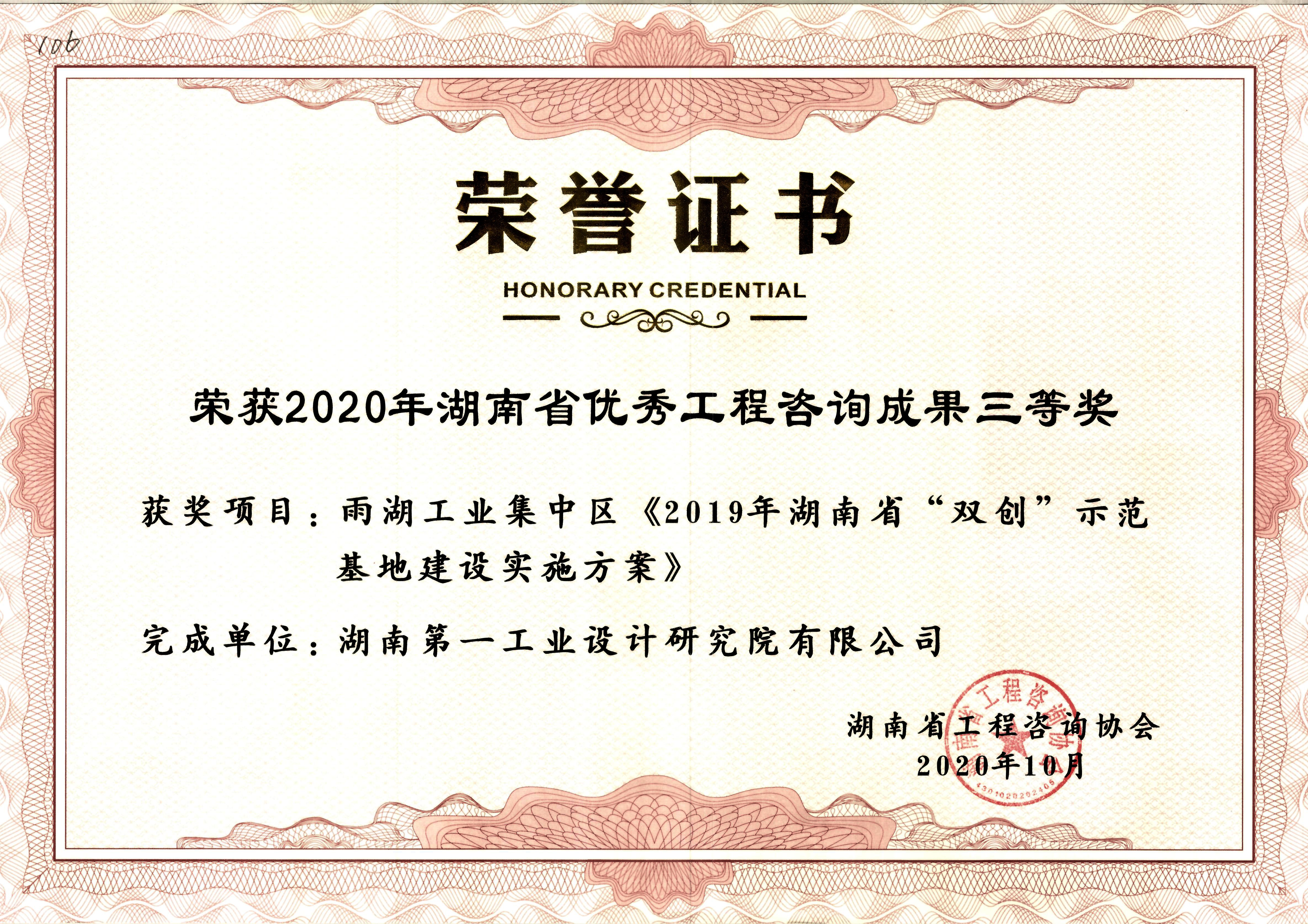 湖南省優(yōu)秀設(shè)計(jì)表?yè)P(yáng)金獎(jiǎng)(1984)